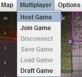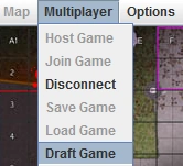 Perhaps one of the most convenient and exciting features of HorrorClix Online is the Draft Game option. To access this, you must be connected to an opponent. Then click on the Multiplayer menu at the top of the screen, then select Draft Game.