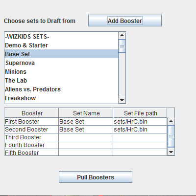 This will bring up the Booster Select screen. Here you'll find the same list of sets you saw in the Team Builder. Click on a set to select it and click Add Booster to add the booster to your pool. You can pick up to five booster packs (2 or 3 is recommended).
