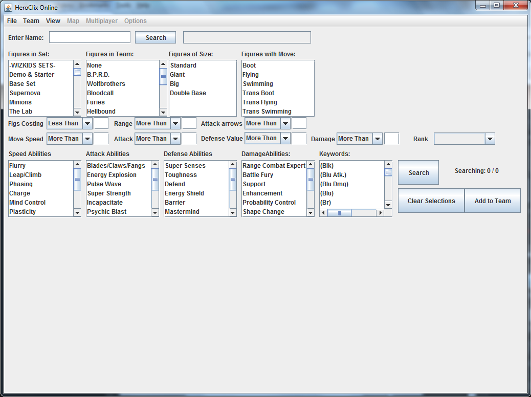 A highly detailed figure search engine. Due to the ad-hoc nature of the HorrorClix Online mod, using the search engine can be slightly tricky, but once you get the hang of it, it's an incredible reference tool. You can also add figures to your team directly from this screen.
